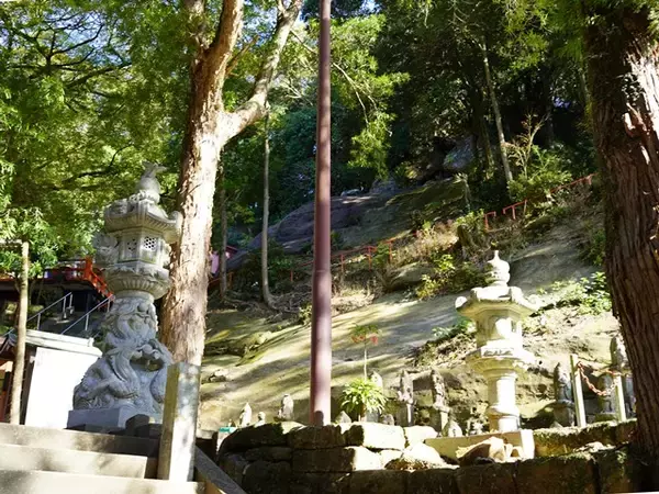 本堂の階段を下りて右側の斜面を15分ほど登っていくと、国指定名勝「平戸八景」にも選定されている「五百羅漢」があります。看板が立っているのでルートの確認を。