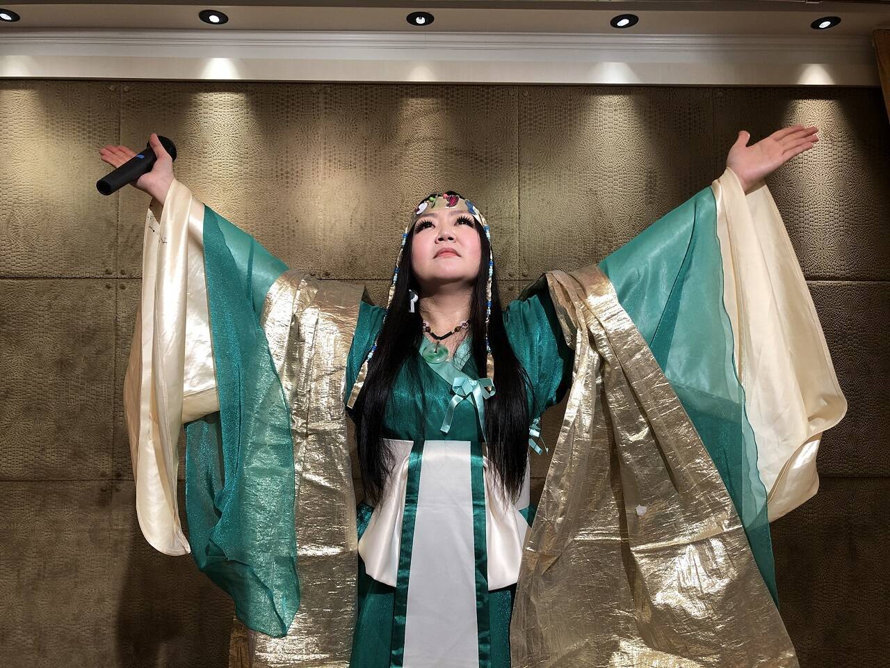 夜はディナー&まりこふん氏のミニライブに参加。黒いジーンズ姿から古墳シンガーに変身した、額田の大王(おおきみ)張りのオーラと、巫女埴輪をイメージしたという特注の衣装!ステキすぎます!「古墳deコーフン」「ハニワのブルース」「遥かなる石舞台」・・・などパワー全開の歌と踊りに釘付けです。そんな元気過ぎる彼女を見ながらふと感じたこと。古墳巡りってパワースポット巡りみないたものなのかもしれない、ってことでした。まだ、彼女のライブを見たことがないという方、ぜひとも下記のツアーに参加し、真っ先に古墳愛シャワーを浴びてください!