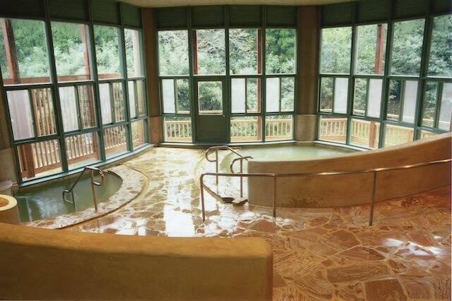 西洋式の家族風呂。ヨーロッパの温泉施設を想わせる独特の佇まいです。異国情緒に包まれながらの温泉は特別感もたっぷり。
