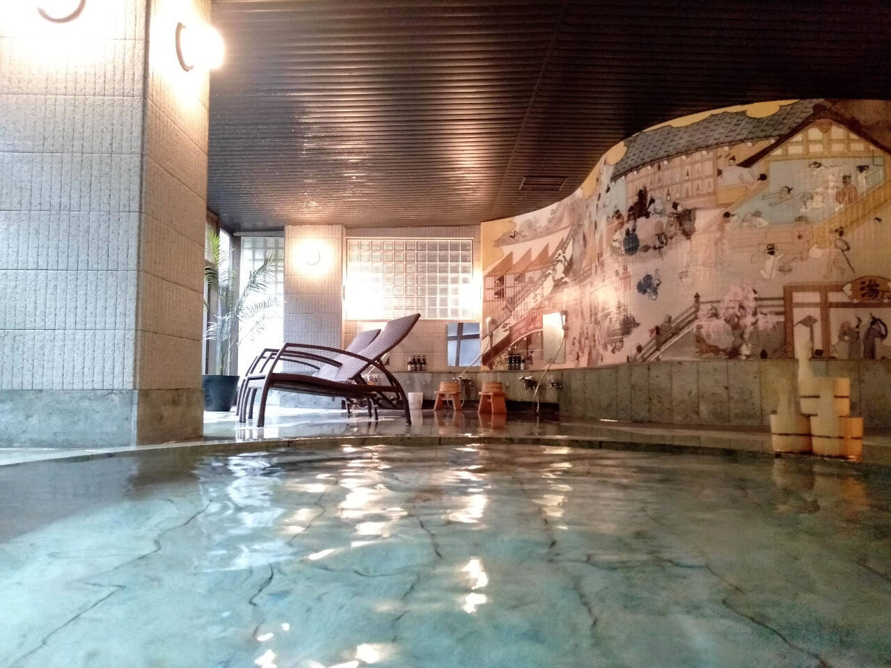 どうですか?泊まりたくなってきたでしょ・・・メインイベントもいえる温泉がこちら!!男女交代制の内湯は2つ。
