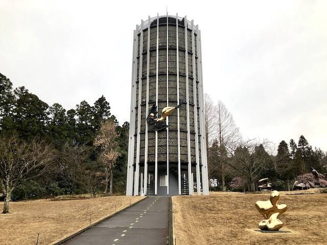 まるでピサの斜塔のように堂々と佇むのは、ガブリエル・ロワール作「幸せをよぶシンフォニー彫刻」。高さ18メートル、内径8メートルのこの塔、重厚なルックスからは想像できない世界が内部に広がっているのです・・・!