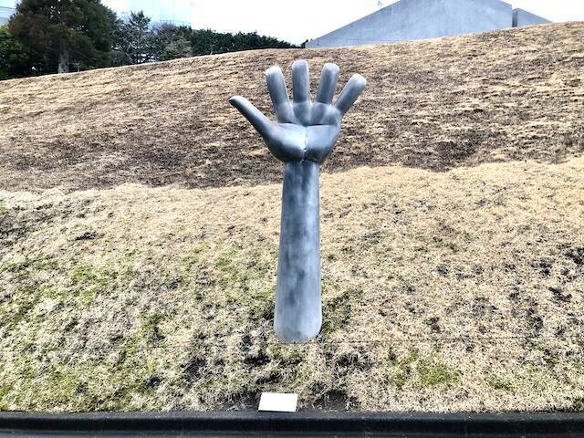 ライナー・クリスター作「大きな手」は、力強く開いた掌が印象的。片や、ドラクエのモンスター“マドハンド”に出くわした気分になるのは多分、筆者だけではないはず・・・。