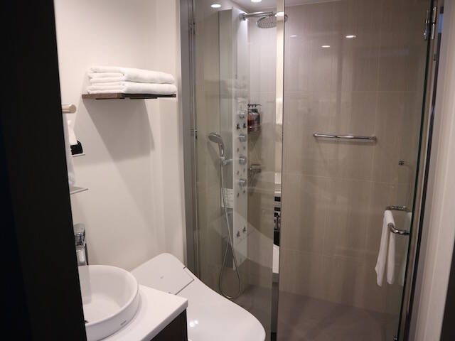 部屋自体はコンパクトですが、スーツケースをベッドの下に収納できたり、大きなサイズのテレビにもかかわらず圧迫感もなかったりと、かなり快適です。