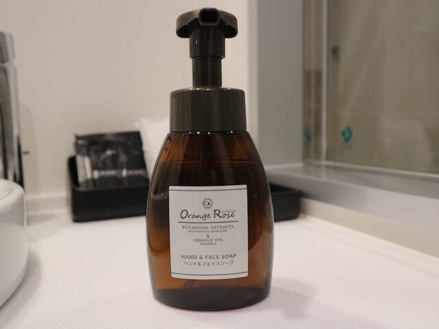 ハンド&フェイスソープは、オレンジの爽やかな香りが漂います。手をよく洗う機会が増えた今、このような高品質なアメニティはとてもうれしいですよね。