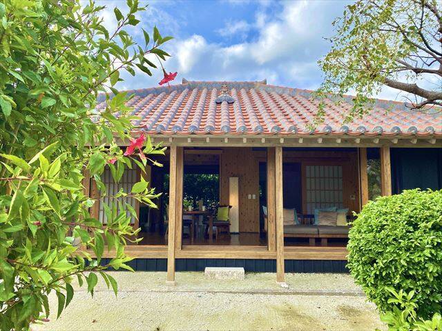 国の重要文化財にも指定されている「旧与那国家住宅」をモデルに、現代風にアレンジしたという客室は、全部で48室。2名または3名で宿泊できる客室があります。筆者が宿泊したのは2名で泊まるフローリングタイプのお部屋「ガジョーニ」です。充分すぎるくらいに、広々ゆったりと使える造りになっています。客室そのものが1棟独立型になっているため、プライベート感がたっぷりで、ほかの宿泊客の気配を感じることがありません。