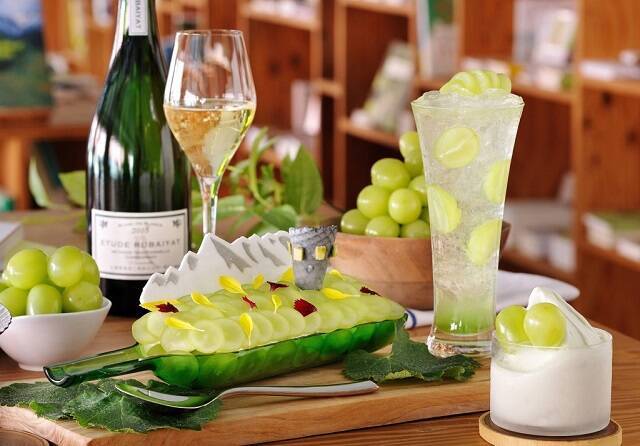 リゾナーレ八ヶ岳内にある「BOOKS&CAFE」では、シャインマスカットを使った3種類のメニューが用意されています。糖度が高く酸味が少ないことが特徴のシャインマスカットが、様々なアレンジで登場しますよ!