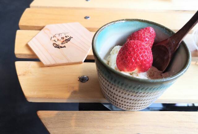 旅した時は、夏限定で、洞川の名水豆腐 山口屋さんの豆乳を使った「豆乳アイスクリーム」、岡下製麺所の麺を使った「冷やし葛うどん」、地元の名水「ごろごろ水」でつくった地ビール、洞川で栽培されている希少な「夏いちご(数量限定)」が登場していました。
