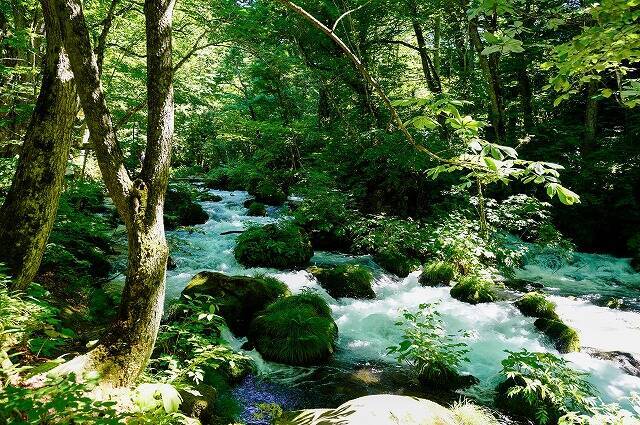 十和田湖から流れ出る奥入瀬渓流に沿って約14km続く渓谷は、躍動感あふれる水の流れと緑豊かな天然林、そしてその根元や岩の表面に生息する苔など、見どころがいっぱい。自分だけでは見逃してしまいそうな小さな自然も経験豊富なネイチャーガイドが一緒なら、その時期に一番美しい景色を逃すことなく教えてもらえます。