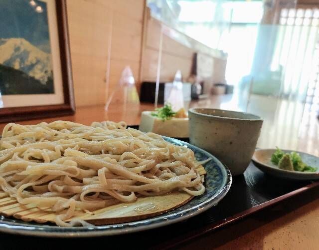 コシがある蕎麦に、大ぶりの海老と野菜の天ぷら。手造り豆腐は豆の味も濃くプルプルで弾力がありなめらか。コロナ対策もされており、お客さんも絶えず来店していました。