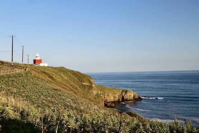 こちらは霧多布半島の東端にある「霧多布岬」。先端のやや手前に立つ湯沸岬灯台は、2010年公開の映画『ハナミズキ』に登場したことで一躍有名に。赤と白の可憐なコントラストが青い空と海によく映えます。