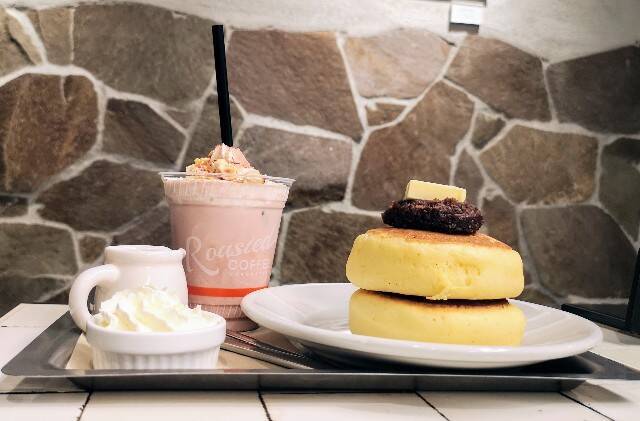 クリームソーダからインスピレーションを受けた「カラーラテ(HOT・ICE)」(テイクアウト580円、店内591円・税込)、喫茶スイーツの「あんバタホットケーキ」(テイクアウト810円、店内825円・税込)、