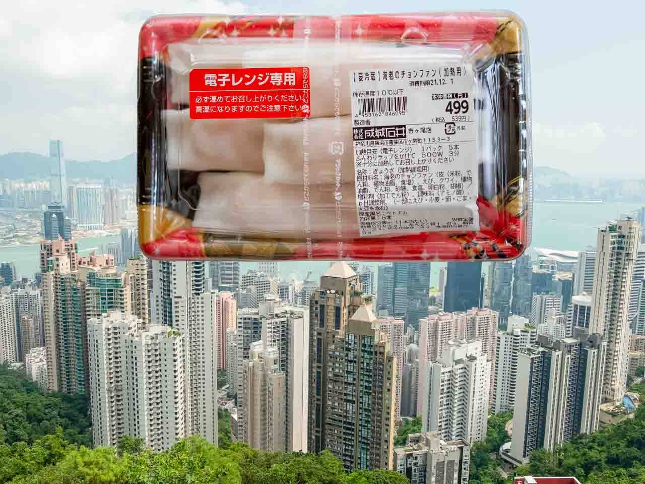 商品名は「海老のチョンファン」(539円・税込)。電子レンジ専用です。500Wで3分加熱します。「ふんわりラップをかけて」と書かれているので、プラスチックの帯と蓋は外してからラップをかけて加熱するようです。