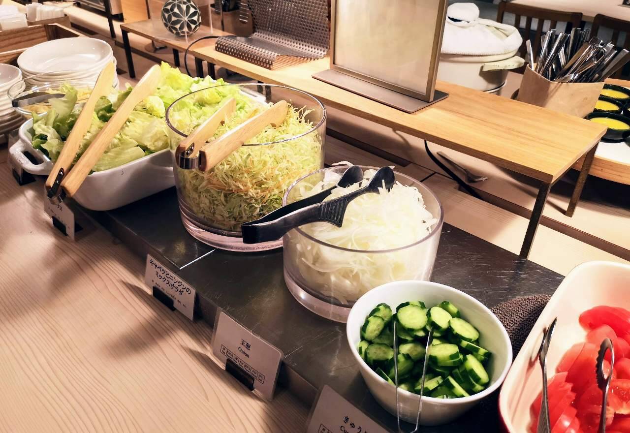 サラダコーナーには、胡麻ドレッシングや天草の塩なども!
