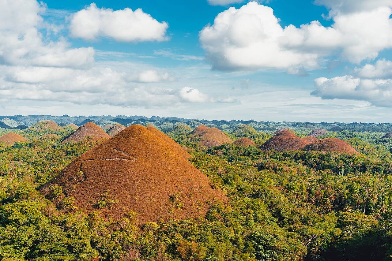 この国は7,000以上の島からなる島国。中部にある島には高さ30mほどの円錐形の小山が1,200以上も連なります。