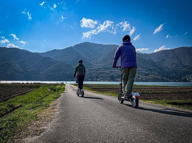 1泊2日食事付きの同プランでは、豊かな自然を擁する同地域を知り尽くしたガイドがアテンド。電動キックボードを駆って、北アルプスの麓に広がる自然豊かなフィールドでのツーリングを楽しむことができるのです。フォトジェニックな絶景を走る心地よさをぜひ!