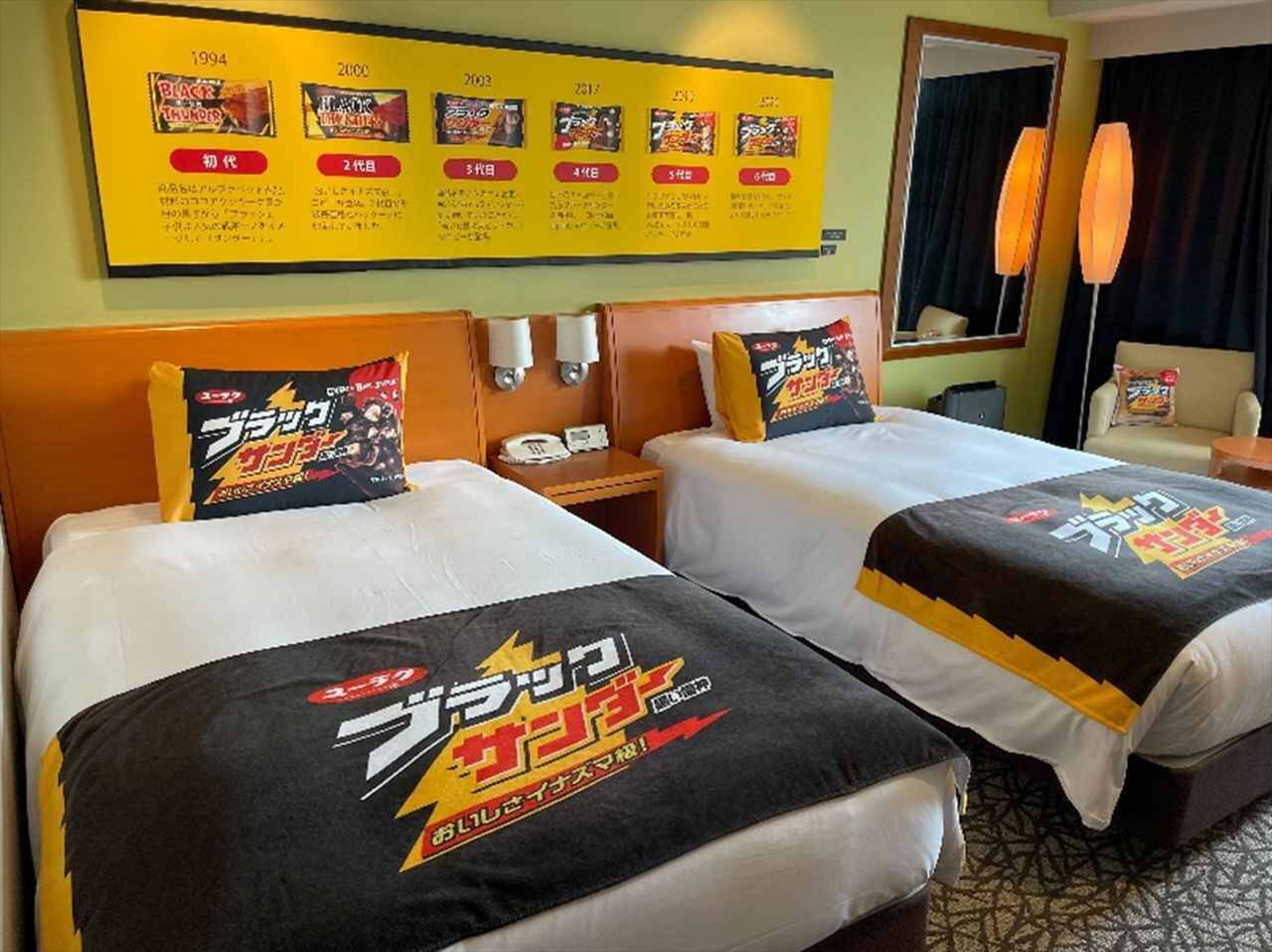 また有楽製菓が運営するブラックサンダー好きが集い、共にブラックサンダーの魅力を発信しあうコミュニティ「黒い広報室」広報の室長から、宿泊者に向けた「黒い挑戦状」(オリジナルクイズ)も用意されています。