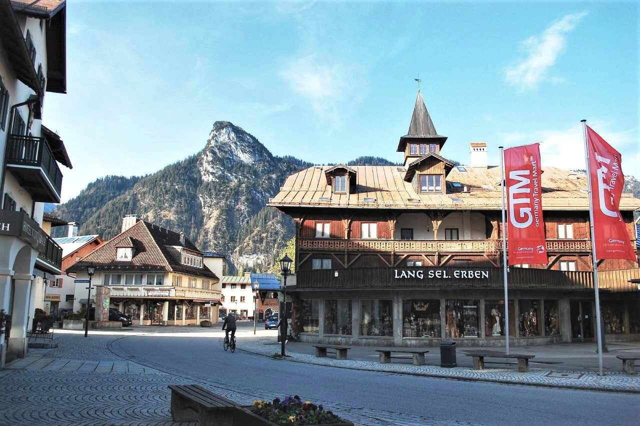 背後にドイツ・アルプスの山々がそびえ、豊かな自然に恵まれたオーバーアマガウ。人口は約5千人の小さな村で、1時間もあれば歩いて回れるほどです。