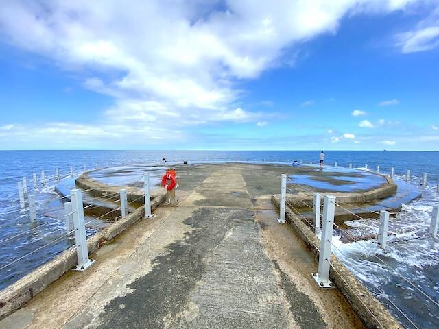 階段状になった円形の部分が、まるで海に浮かぶ舞台のようで素敵なんです。突堤はさらに続いているので進んでみます。