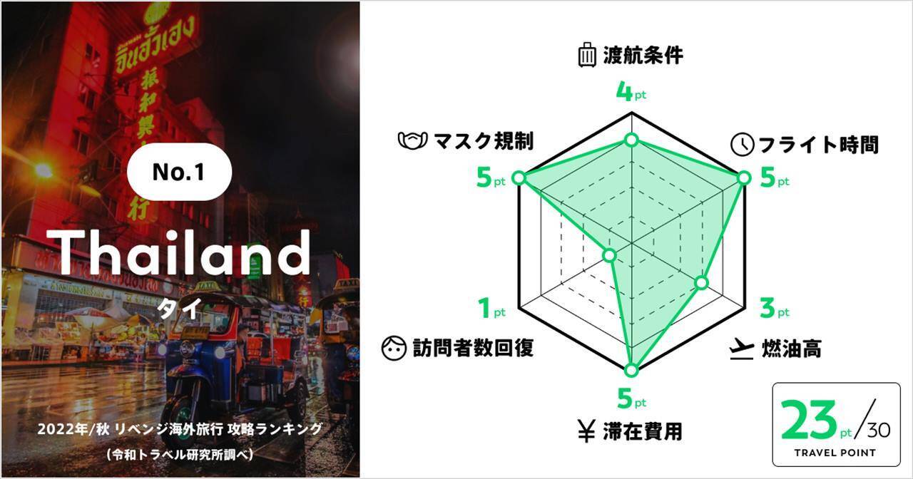 円安、物価上昇率、燃油高など、影響が少ないタイがトップに。