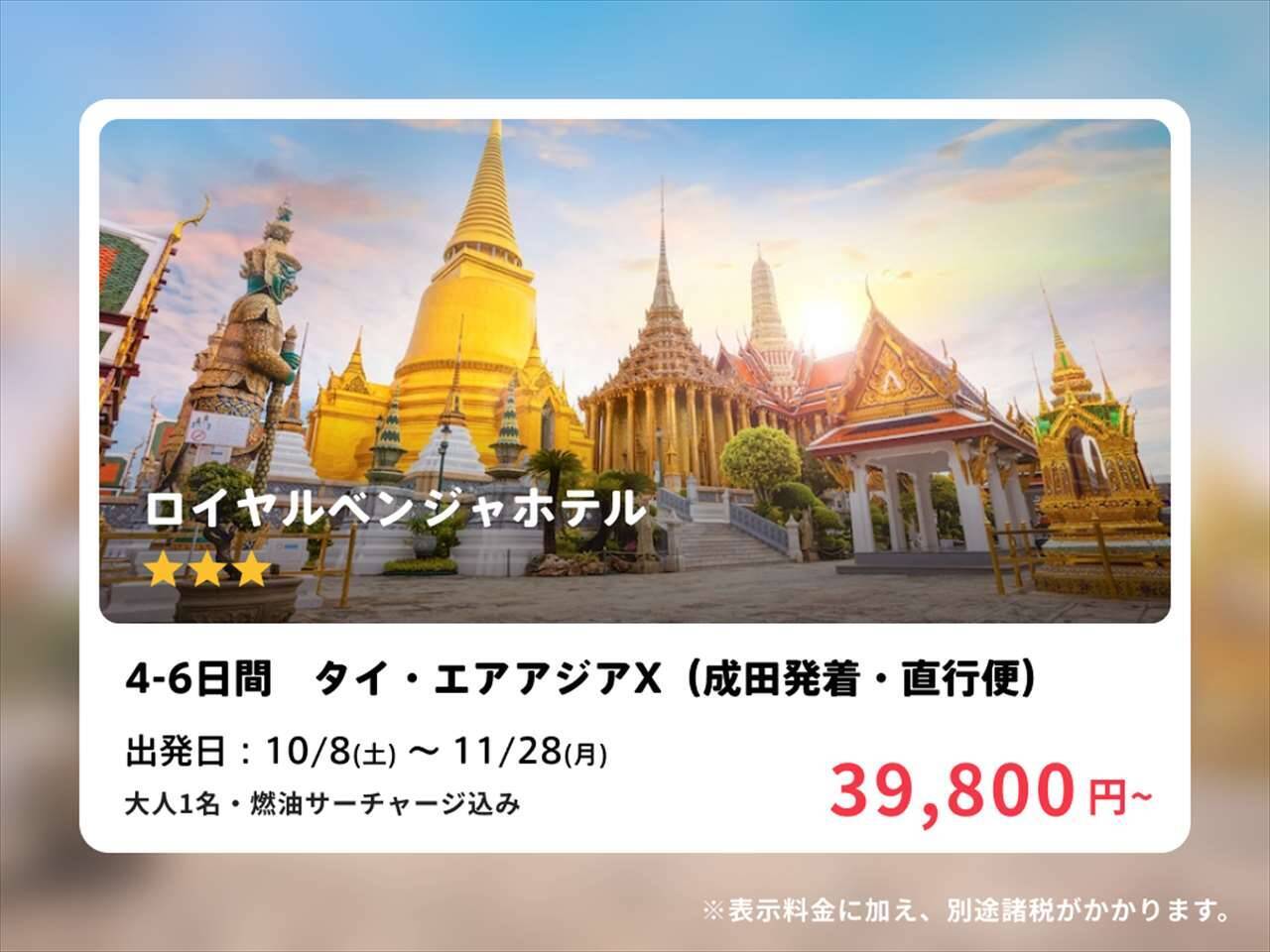 <料金>39,600円~(大人1名・燃油サーチャージ込み※表示料金に加え、別途諸税がかかります。)