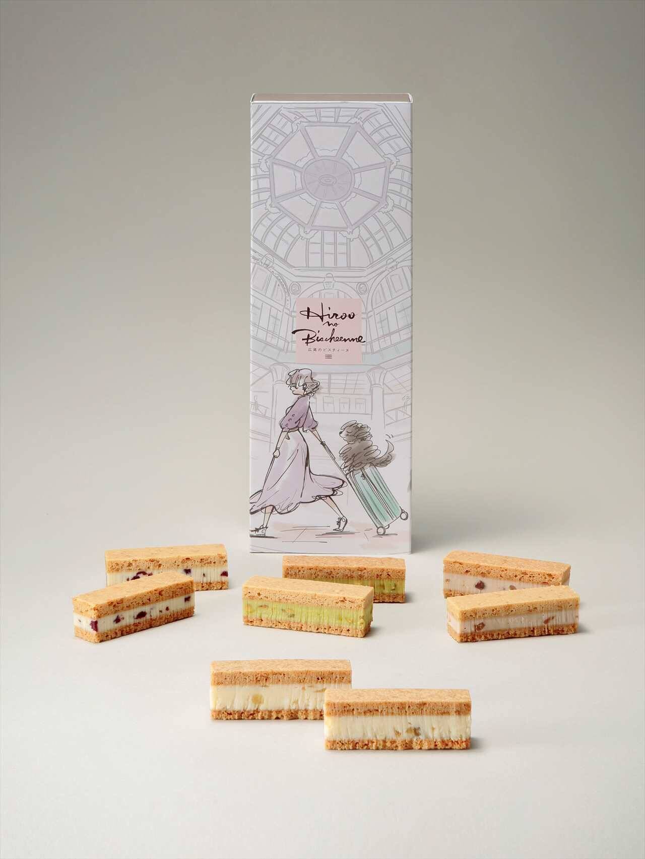 東京駅 「エキュート」「グランスタ」定番手土産スイーツ売上ランキングTOP10で第4位に選ばれている「広尾のビスチィーヌ アソート8個入り」。「広尾のビスチィーヌ」とは、クローブ、カルダモン、ナツメグ、ジンジャー、シナモンを独自にブレンドして焼き上げたビスキュイにクランベリーとチーズガナッシュを挟んだお菓子です。定番の3種類の味に「福島の桃」を使って特別にアレンジしたビスチィーヌも加わりました。