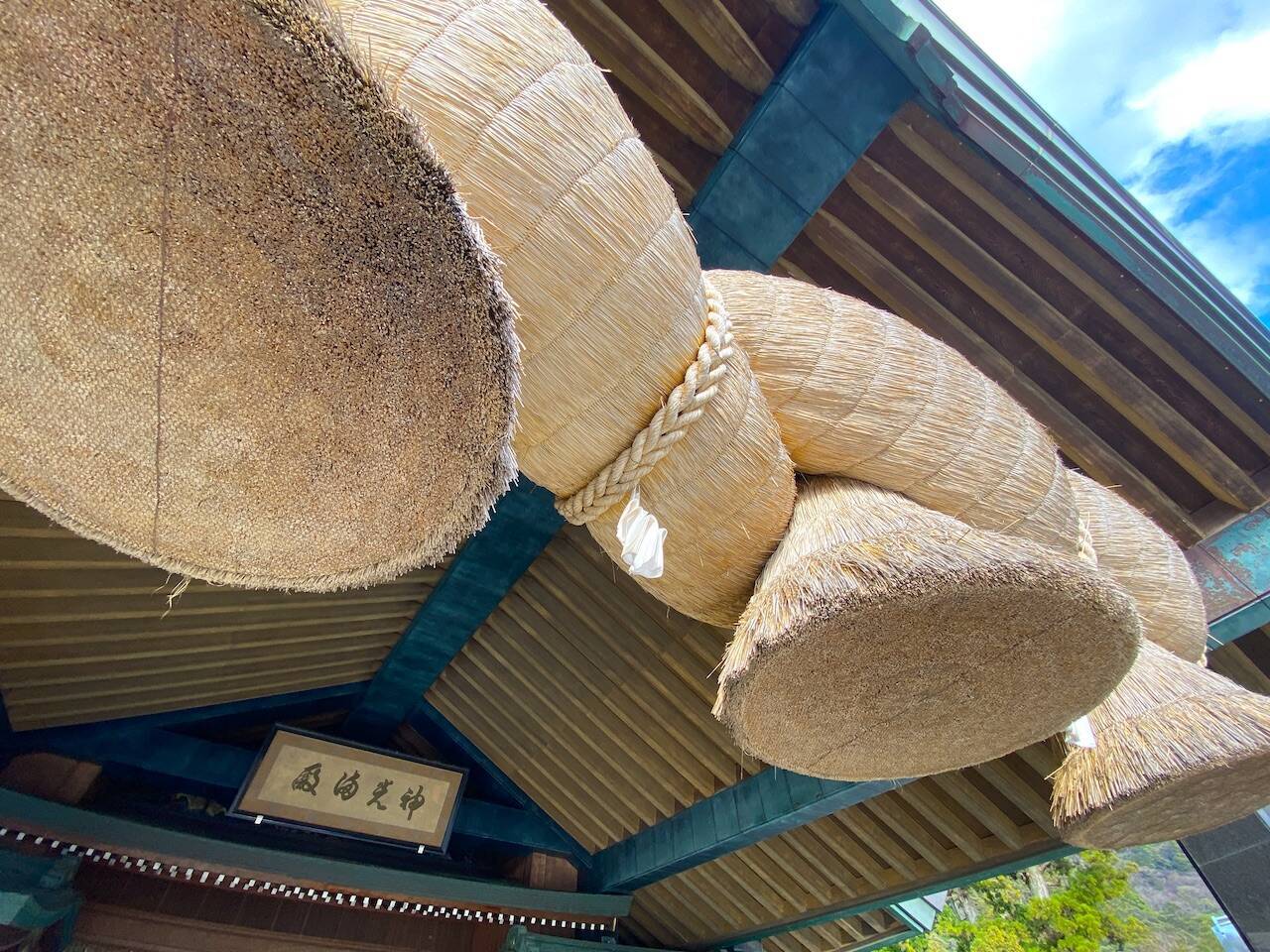出雲大社といえば、真っ先に思い浮かべるのが神楽殿の大注連縄。このしめ縄は長さ約13m、重さ5.2トンもあり、数年に一度、新しいしめ縄へとかけ替えられます。
