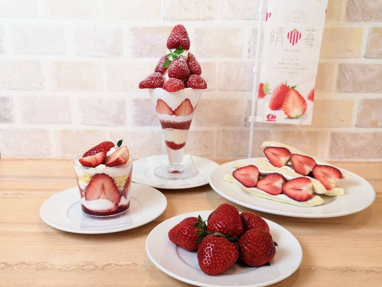 新橋のアンテナショップ「とっとり・おかやま新橋館」の2階にある「ビストロカフェ ももてなし家」では「晴苺のパフェ2023」、江戸川区西葛西の「フォーシーズンズカフェ」では「晴苺のショートケーキ」、日本橋茅場町の老舗フルーツパーラー「イマノフルーツファクトリー」では「晴苺のサンド」が登場。