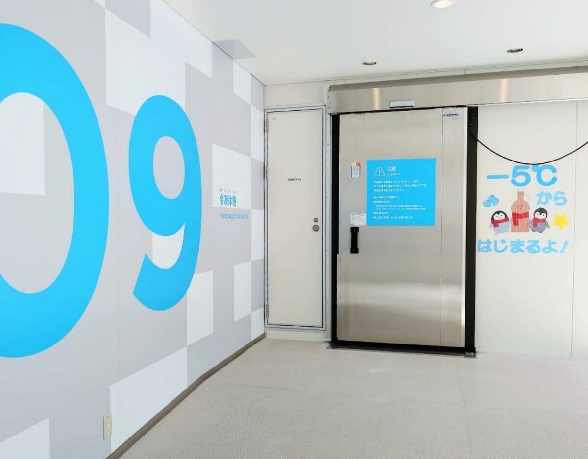 その後、アイスは52メートルもの高さのある螺旋階段のような冷凍トンネルの中で、-3℃から-10℃にまで温度を下げて35分かけて均等に冷やされていきます。-10℃まで温度が下がるアイスの急速冷凍の様子を再現した「冷凍庫内」も徒歩で通過! アトラクションのようなひんやり体験!