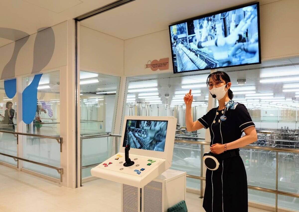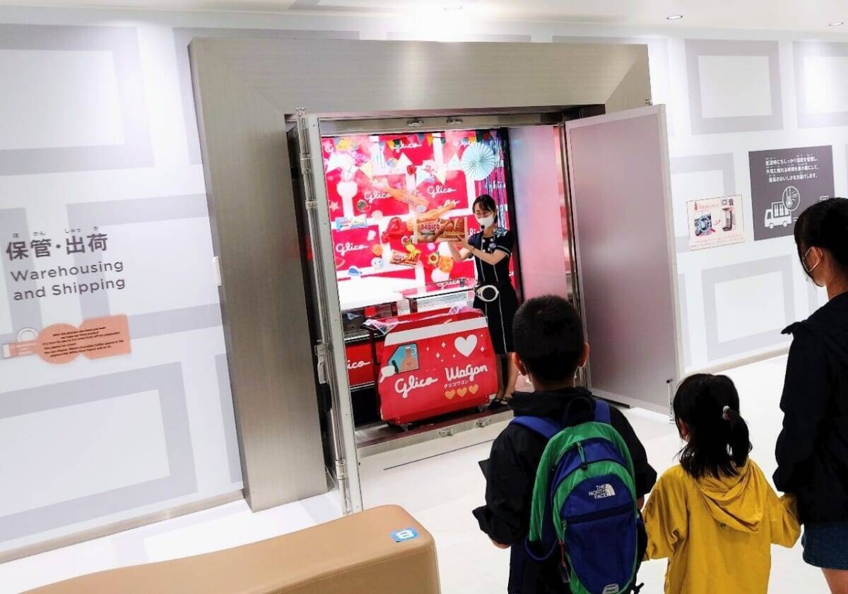 まずは1階のシアタールームへ。江崎グリコの歴史や、キャラメルの栄養菓子「グリコ」の誕生秘話、アイスの歴史と製造工程などについて映像を観て学んだら、いよいよおいしいツアーがスタートです!