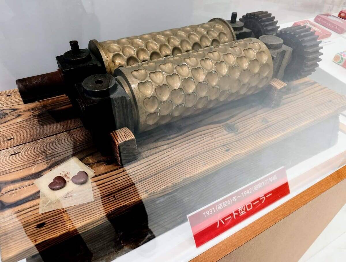 大正時代に誕生した看板商品のキャラメル「グリコ」。カキの煮汁から採取したグリコーゲンをキャラメルの中に入れた栄養菓子が誕生の始まりで、角のない口あたりのよさと、人々の健康を想う気持ちをハート型で表現。当時の技術では成型が難しかったため、自社で「ハート型ローラー」(1931年~1942年頃)を開発したのだそう!
