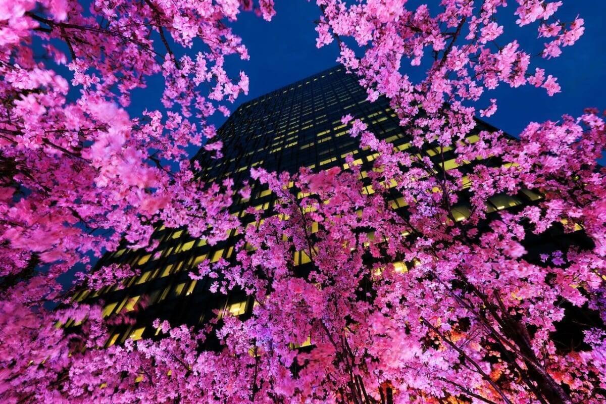 大名古屋ビルヂングの5階にある、都会の空中庭園「スカイガーデン」が、サクラをモチーフに装飾した「サクラスカイガーデン」となって都会の春を彩ります。美しく咲き誇る天空のサクラ並木に、複数のフォトスポットが登場。夜には、ピンク色のイルミネーションが華やかなひとときを演出してくれます。