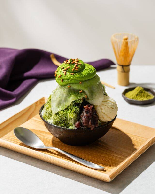 甘さ控えめで香り高い抹茶蜜とトンカ豆がふわりと香る練乳ソースを合わせた、奥行きある味わいのかき氷です。