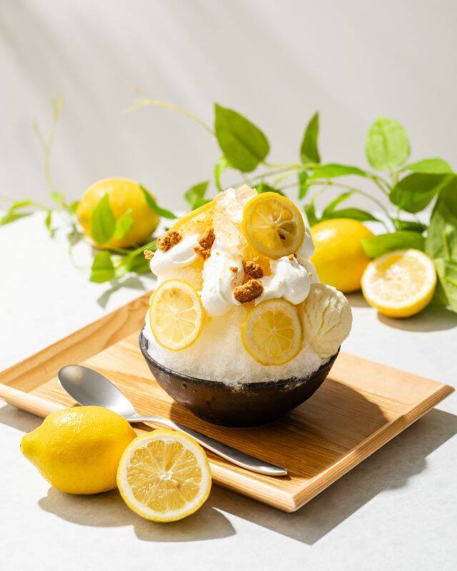 丹波産レモンの爽やかな香りとマスカルポーネチーズのまろやかなコクが重なり合う、爽やかな味わいのかき氷です。