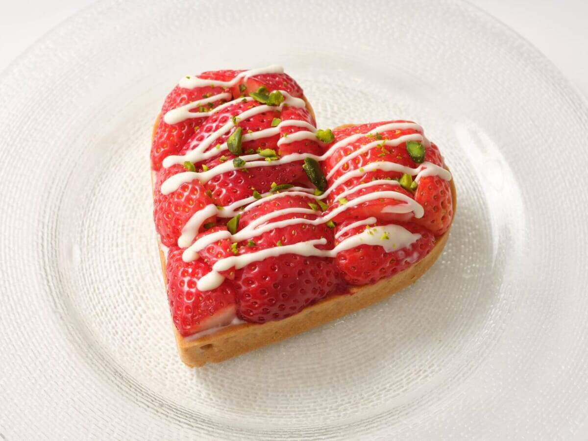 新宿店でも話題となった、ハートのカタチが目を引く季節限定のいちごのタルトです。贅沢に約5粒分のいちごが使われ、サクサクに焼き上げたタルト生地と、甘酸っぱいいちごのバランスは絶妙です。