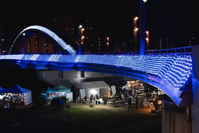 川見のもう一つの魅力は、幌平橋のライトアップ! 水面に映る、ライトアップされた橋の美しさは見事です。