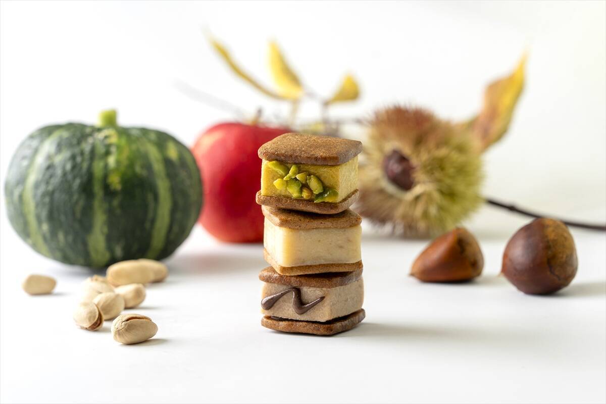 かぼちゃの自然な甘さとクリームチーズのコクがマッチしたバターサンド。ピスタチオの彩りと食感が絶妙なアクセントになっています。