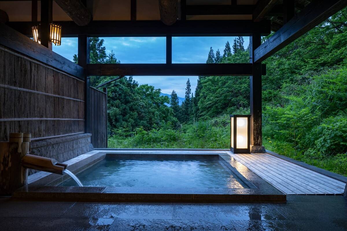 魚沼三山を望む貸切露天風呂で、心まで温まる