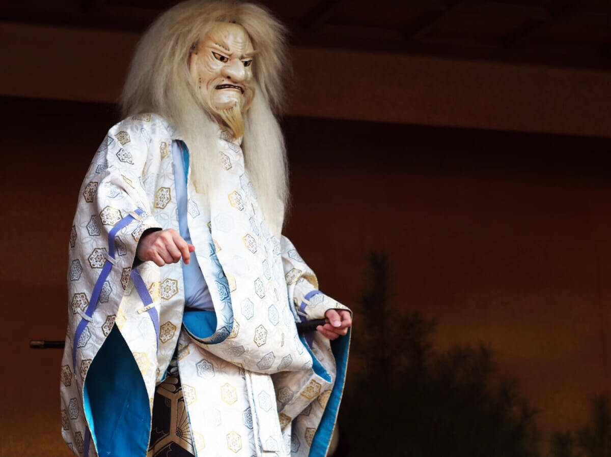 盗賊・熊坂と牛若丸が繰り広げる激しい戦闘をダイナミックに表現する能『熊坂 替之型』。シテの熊坂長範を観世清和氏の嫡男である観世三郎太氏が演じます。