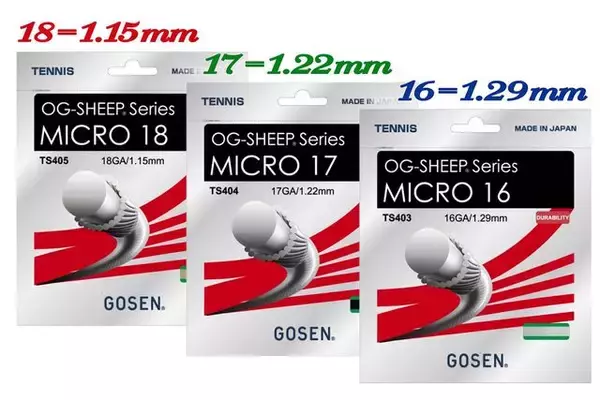 それぞれ、だいたい同じ太さですが、表記のしかたがさまざまです。ここでみなさんが「???」と思うのは、『17』とか『16L』、それに『G』『GA』『GAUGE』って数字・記号でしょう。これは「ゲージ表記」で、「ミリ表記」とは、まったく別の「太さ基準」なのです。テニスショップで「ゲージは何ミリにしますか?」と訊かれることがある……というか、ほとんどみなさんがこう言います。