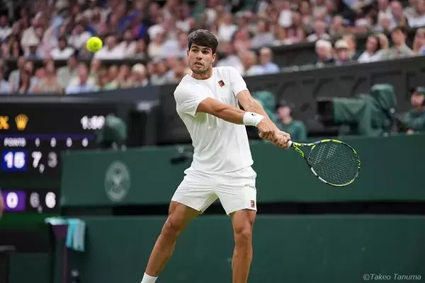「ウィンブルドン」(イギリス・ロンドン)男子シングルス4回戦が行われ、大会3連覇を狙う第2シードのカルロス・アルカラス(スペイン/世界ランク2位)は、第14シードのアンドレイ・ルブレフ(同14位)を6-7(5),6-3,6-4,6-4で下して3年連続8強入り。2023年大会から続いている連勝を18に伸ばした。