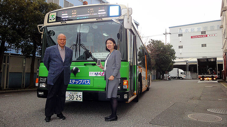 1月16日には、荒俣宏や東京都交通局 吉浦宏美 課長(写真)といっしょに、都営バスに乗って実際に「都営バスで巡る 地形テキストラリーGPS」にトライ。