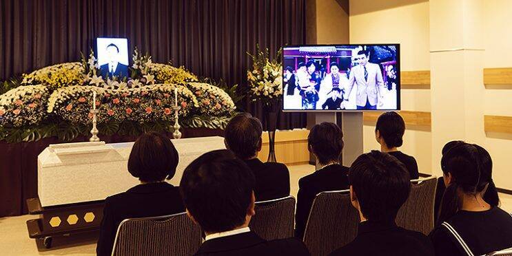 メモリアルムービーは、参列者全員で故人の在りし日を回想する映像を上映し、故人に寄り添う時間を演出する。