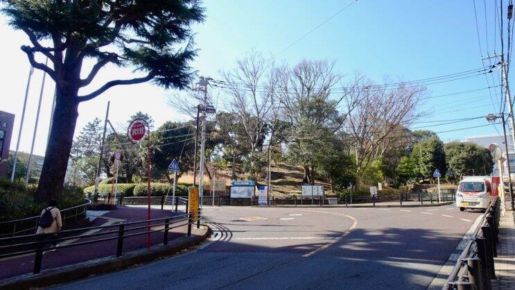 左折して横浜市中央図書館の前を通り坂を西に向かいます。