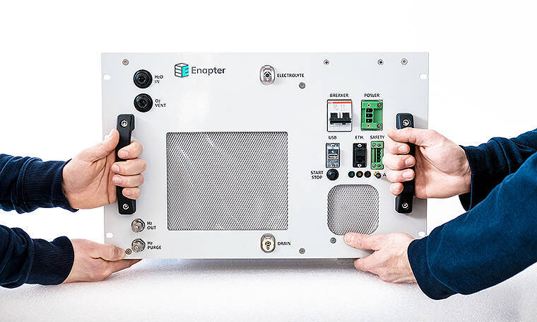 こうした背景のなか、ドイツ ベルリンに本社をおき、高効率の水電解水素製造装置を設計・製造しているエナプターは、同社が特許を有する陰イオン交換膜(AEM)式水電解装置の最新モデル『EL 2.1』を「水素・燃料電池展 FC EXPO」(2月26~28日 東京ビッグサイト)で発表した。