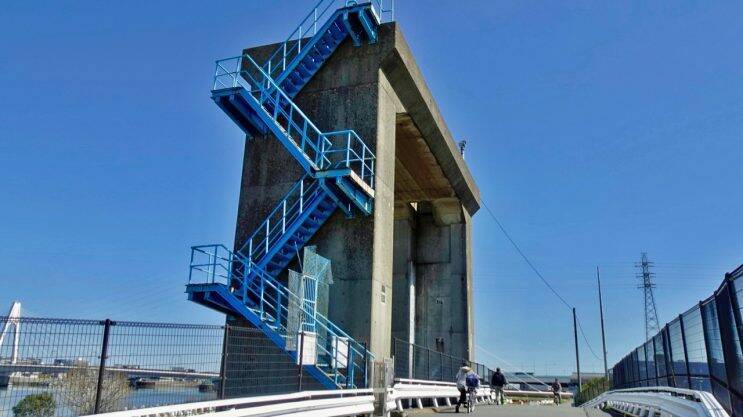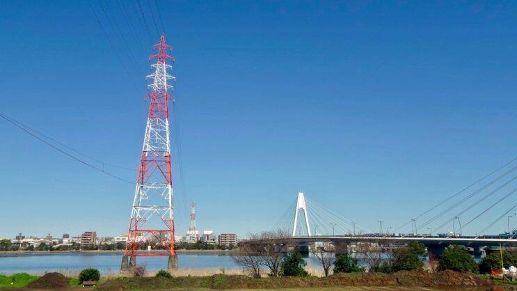 筆者は紅白に塗られた鉄塔が青空バックに立っている写真が好きなのですが、特にこの鉄塔は多摩川の中に立っていてフォトジェニック。右の大師橋とのコントラストが美しい。