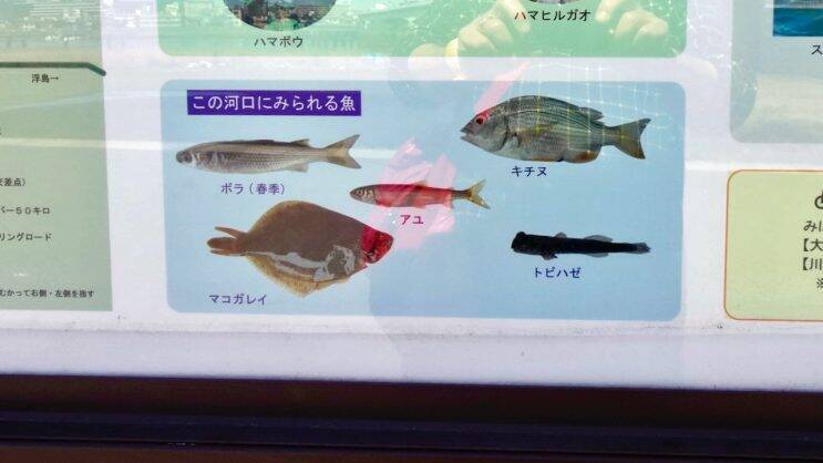 「多摩川八景 多摩川の河口」の「この河口にみられる魚」がありました。ボラやアユ、トビハゼは何となくわかりますがマコガレイ、キチヌ(初めて聞く魚名です)が捕れる?