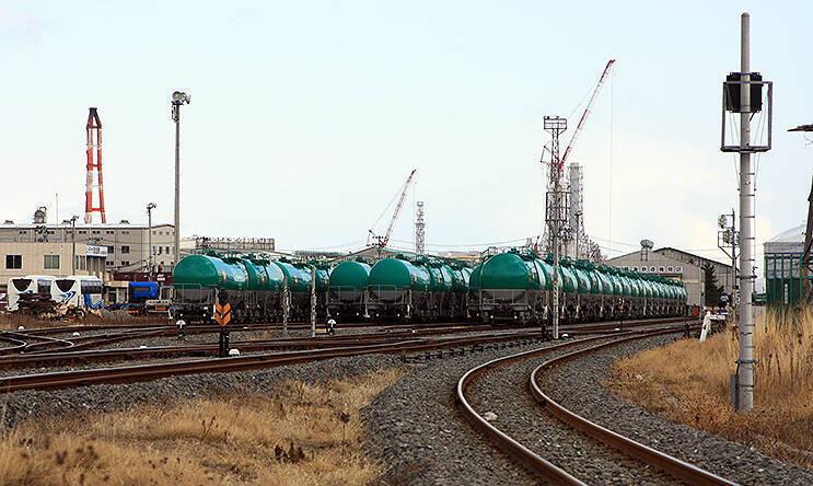 ふたたびタンク車に目をやると、貨車のむこうに仙台臨海鉄道機関区でねむる、ディーゼル機関車の姿がちらっと。