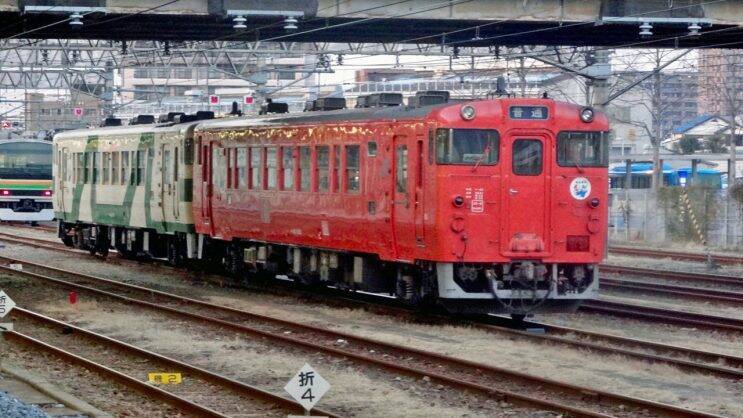 陸羽東線のキハ112-219が入ってきました。新庄行です、車窓からの眺めが良いんですよね。