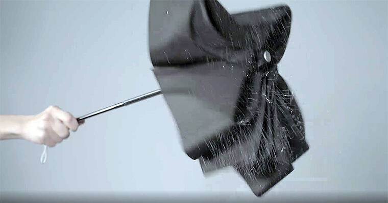 形態安定技術を採用した世界初の折りたたみ傘 urawaza(ウラワザ)は、傘の裏側に貼られたPET樹脂素材の特殊シートが、折りたたむときにガイドの役割を果たし、シワにならず、スパッと折りたためる。