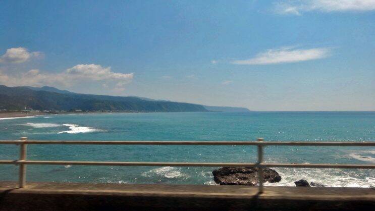 トップ画像は、高知東部交通バス奈半利行の車窓。室戸岬が見えました。